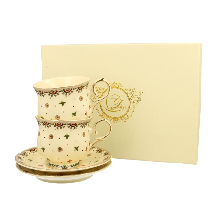 Zestaw 2 filiżanek ze spodkiem w opakowaniu prezentowym.
