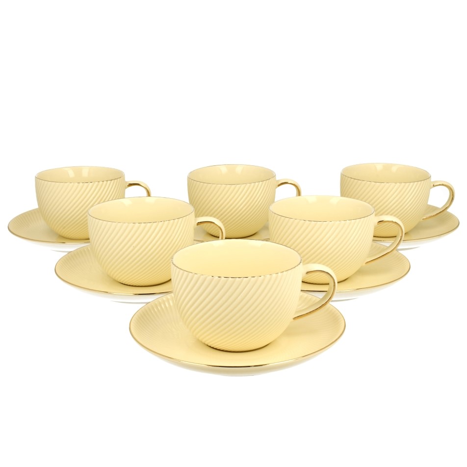 Komplet sześciu filiżanek ze spodkami ICE CREAM wchodzący w skład serii ECRU Exclusive, wykonany z porcelany New Bone China w subtelnym kolorze ecru, która charakteryzuje się delikatnym połyskiem oraz wyjątkową wytrzymałością i trwałością, zachowując przy tym lekkość i finezję.