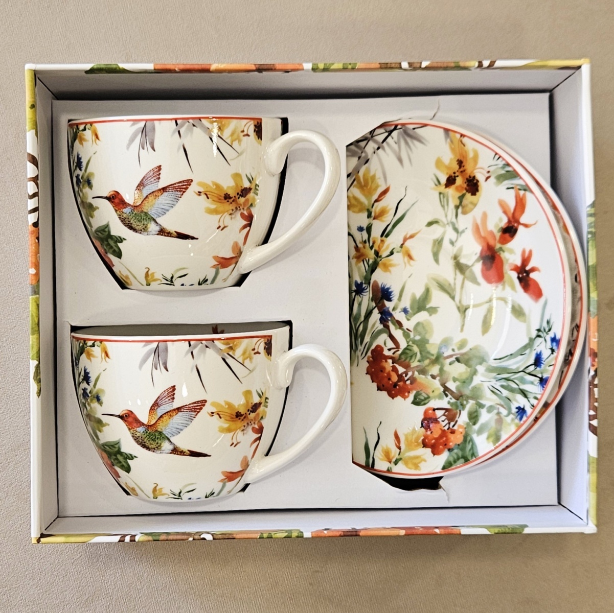 Komplet dwóch filiżanek ze spodkiem LINNEA wchodzący w skład serii Flower Classic, wykonany z porcelany New Bone China, charakteryzującej się elegancką i naturalną kremowo – białą barwą z delikatnym połyskiem, a także wyjątkową wytrzymałością.