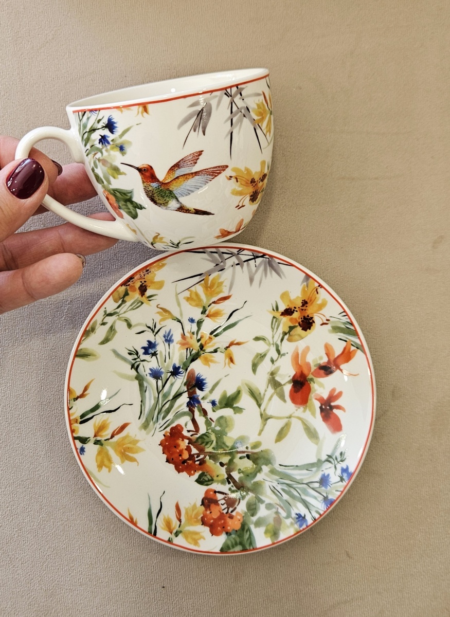 Linia zdobiona motywem malowanych kwiatów w wyrazistych kolorach oraz uroczego kolibra.