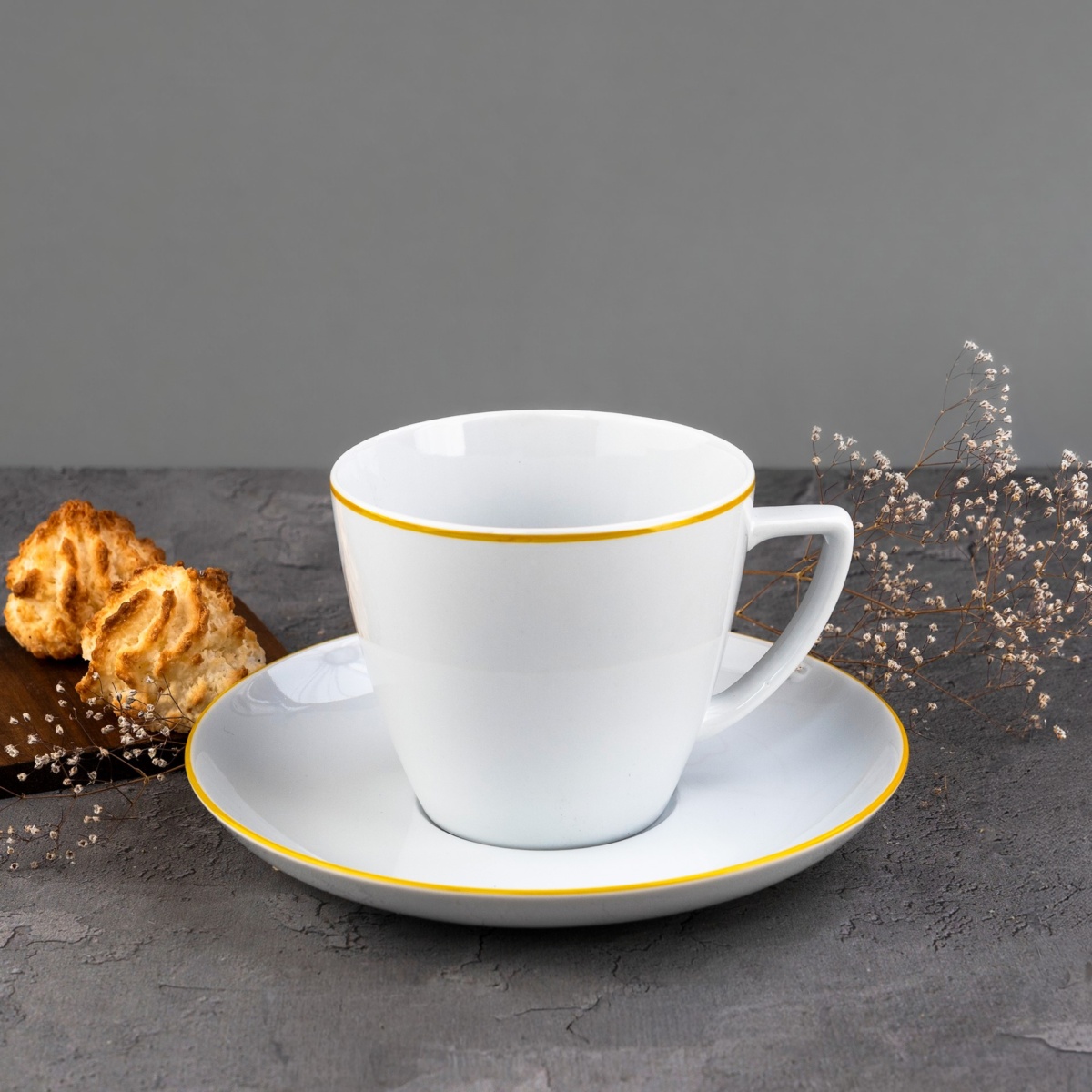 Zestaw zawiera 1 sztukę filiżanki ze spodkiem.