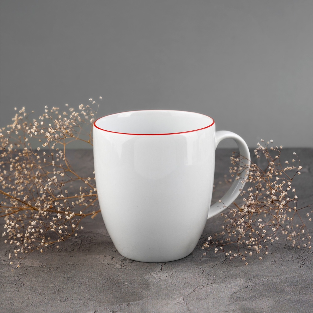Elegancka kolekcja białej porcelany z subtelnym, kolorowym rantem, który nadaje jej nowoczesnego charakteru. Minimalistyczna forma i delikatne wykończenie sprawiają, że zastawa doskonale sprawdzi się zarówno na co dzień, jak i podczas wyjątkowych okazji.