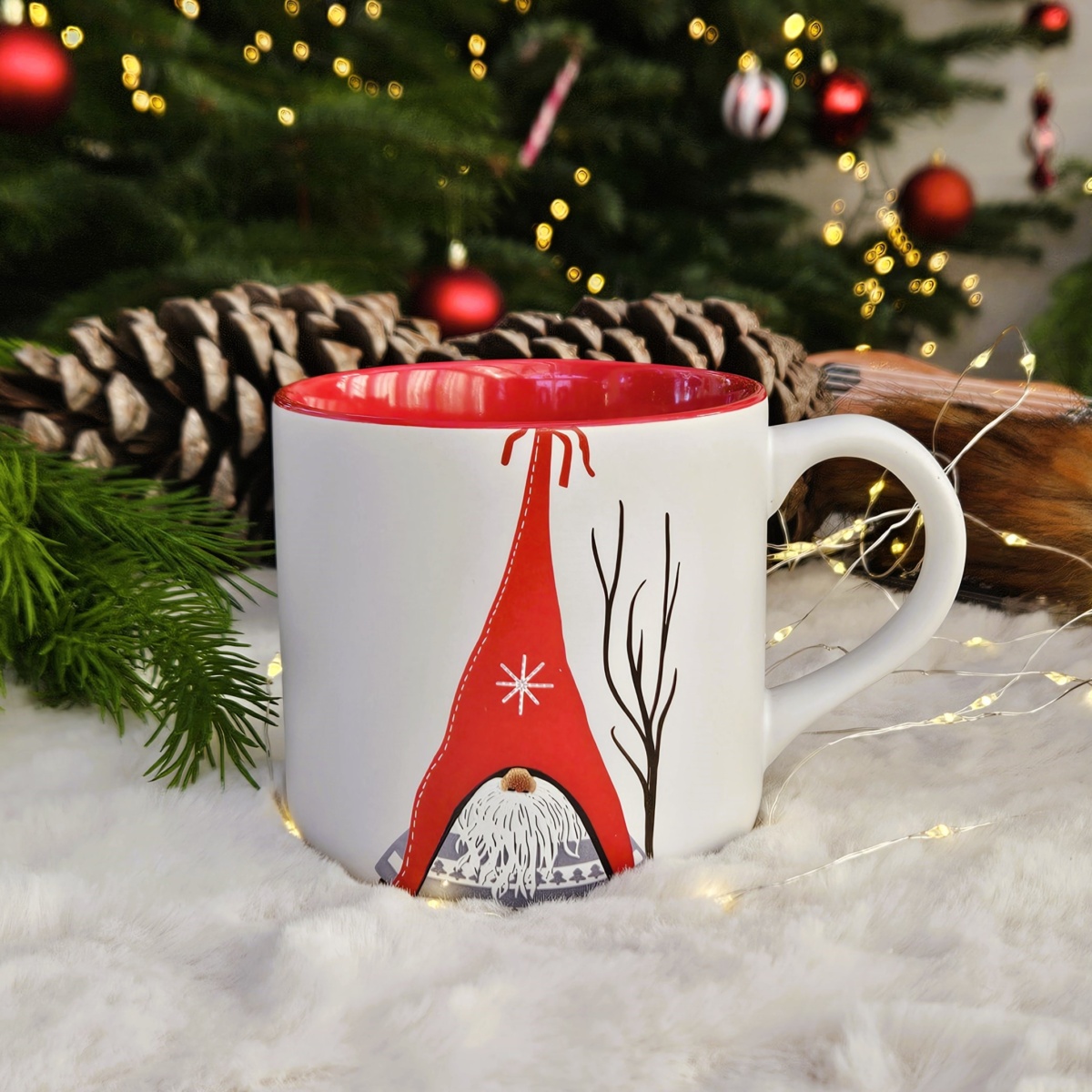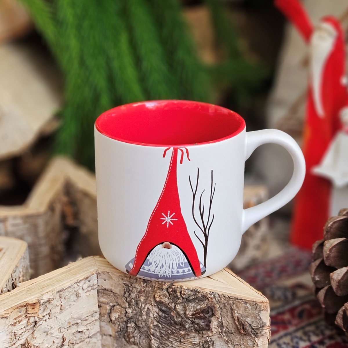 Kubek biały MATOWY z czerwonym błyszczącym środkiem.