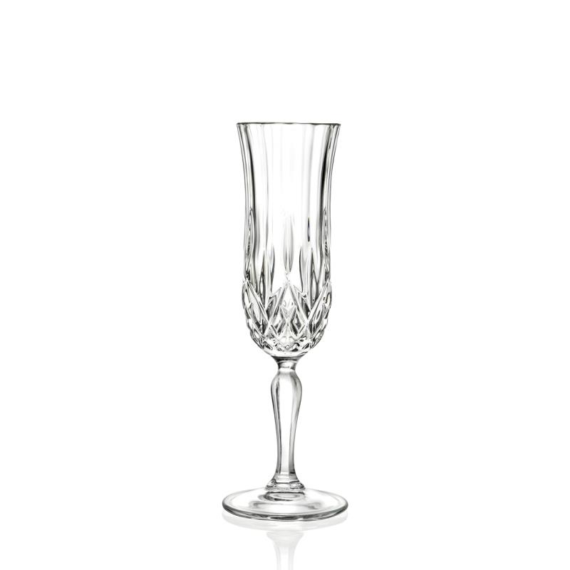 Kieliszki do szampana o poj. 130ml. OPERA to wysokiej jakości szkło krzyształowe, które jest ekologiczne i w 100% nadaje się do recyklingu. To co jest bardzo charakterystyczne dla produktów RCR to idealnie przejrzyste i błyszczące szkło, które wydaje przyjemny dźwięk np. podczas toast