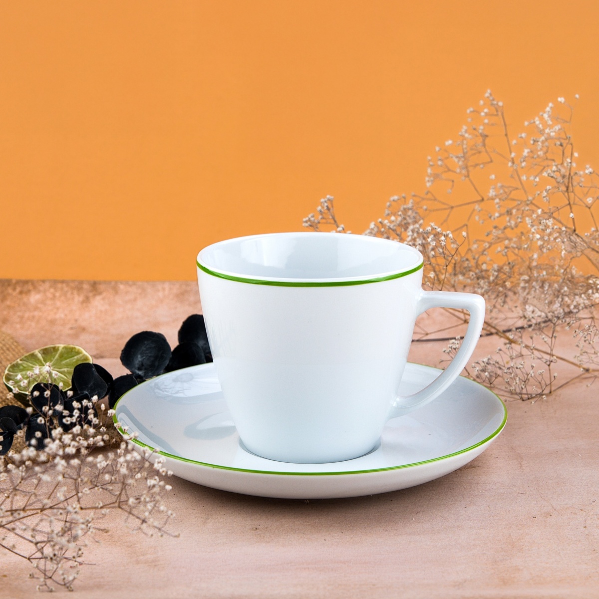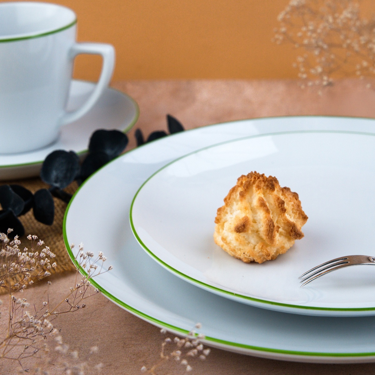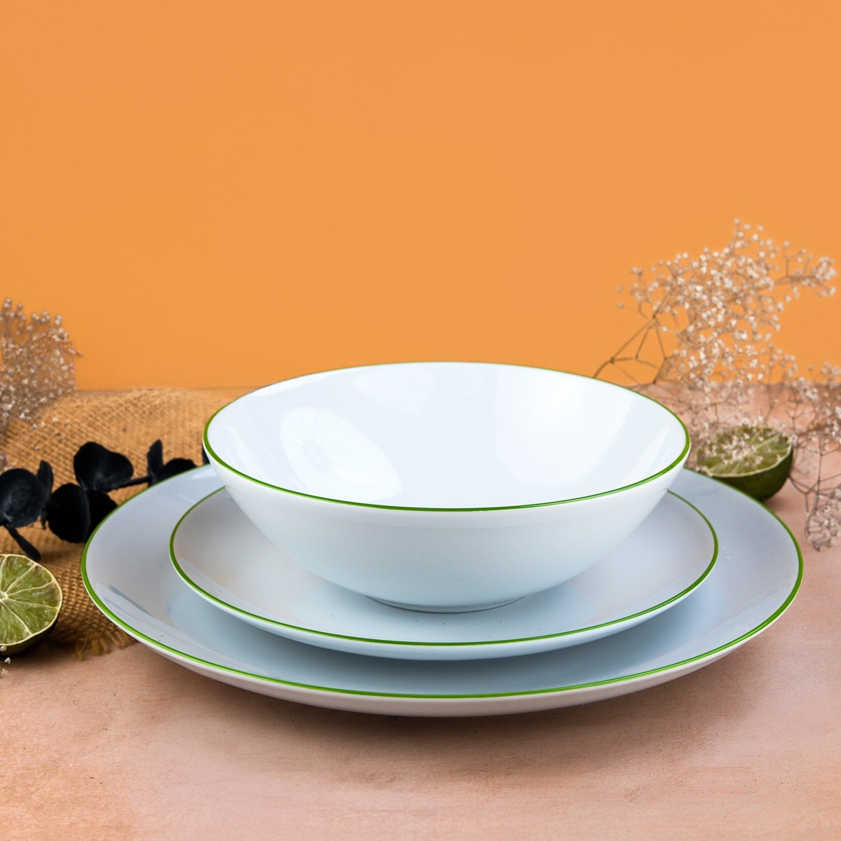 Elegancka kolekcja białej porcelany z subtelnym, kolorowym rantem, który nadaje jej nowoczesnego charakteru. Minimalistyczna forma i delikatne wykończenie sprawiają, że zastawa doskonale sprawdzi się zarówno na co dzień, jak i podczas wyjątkowych okazji.
